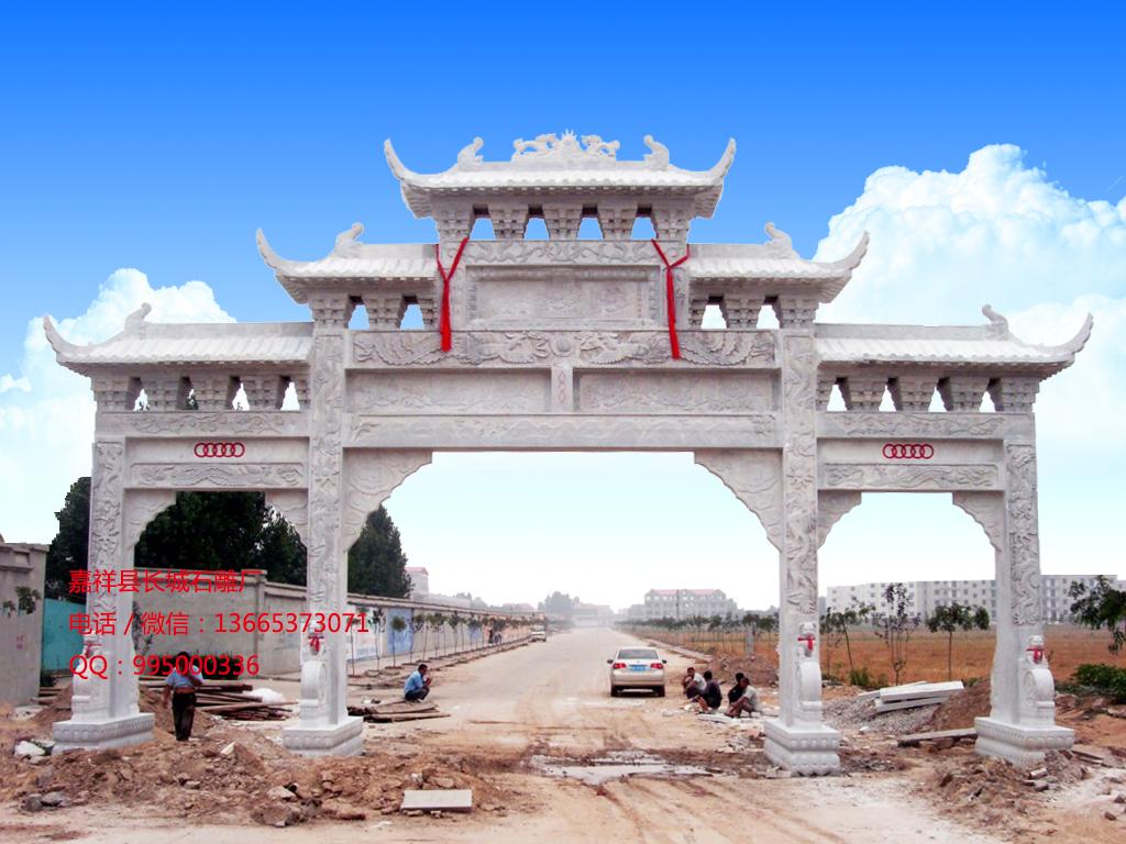 当人们去农村看到村口石牌坊时,都会关注当地的文化特色,而石牌坊厂家在制作设计村口石牌坊时已经将该农村的文化特色都设计在了石牌坊上,并雕刻了出来,这样能够让人们更好地了解到该农村的魅力,村口石牌坊是人们智慧的结晶,是彰显文化特色的建筑物,安装村口石牌坊不仅有它意义和价值,还有一定的美观性。
